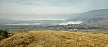 The high-altitude valley is surrounded by even higher mountains on all sides: to the north is the Korab range, containing Mount Korab which, at 2764 metres, is the highest point in both countries; the mountains on the other sides also exceed 2000 metres. The Black Drin flows from the south through a narrow canyon into the valley and leaves it through a similarly steep canyon. Previously the river was notorious for annual floods, as a result of which there are no settlements near the river itself. Since the construction of a reservoir on the Macedonian side, the Debar Lake, the level of the river is regulated.