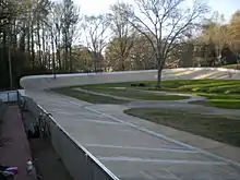 Dick Lane Velodrome, constructed in 1974, is a bicycle racing facility inspired by a group of residents and City officials that visited the Munich Olympics. Located eight miles south of downtown Atlanta, the Velodrome is 321.8 metres (1,056 ft) and 36° banked concrete track, set in Sumner park in a residential part of East Point. Dick Lane is the only velodrome in the world with a green space that contains a large sweet gum tree and a creek running through the in-field. The City of East Point owns the facility and has a long-term partnership with East Point Velodrome Association, Inc. (EPVA) to manage it.