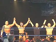 While in Michinoku Pro Wrestling,[4] he formed a stable called Kai En Tai DX with Taka Michinoku, Shoichi Funaki, Men's Teioh and Shiryu; Togo, along with some of his Kai En Tai teammates, was briefly a member of The Blue World Order in ECW. Throughout his career, Togo has been a part of several stables in the Japanese independent circuit: most famously the original Kai En Tai in Michinoku Pro Wrestling, but also the Legion of Violence (LOV) in Osaka Pro Wrestling, with Black Buffalo and Daioh Quallt, the Far East Connection with Gedo, Jado, Masao Orihara, and Ikuto Hidaka in various promotions; and most recently New Wrestling Aidoru (NωA) with Makoto Oishi, Mao and Shunma Katsumata in DDT.