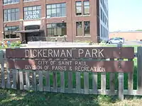 Dickerman Park is an urban park in Saint Paul, Minnesota, United States. The park is located along University Avenue. The park is 2.5-acre (10,000 m2) in size and stretches along the north side of University from Fairview to Aldine street.[1] The land was donated to the city in 1909 but was never developed as a public green space. Since the park's founding sections have been paved over for parking lots and other sections are used as front yards for businesses.[1] Proposals for redevelopment gained traction in the 2000s with support from the original family that donated the land. The park is often mistaken as a broad setback from buildings on University Avenue.[2]