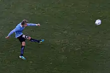 A talented, technically gifted, hardworking and creative player, with an eye for goal, Forlán was a quick, clever, complete and versatile forward, with a good positional sense, who was capable of playing anywhere along the front line.[79][80][81] He was deployed as a main striker (his favoured position), as a supporting forward, as an attacking midfielder, and even as a winger, often drifting onto the flank to begin attacking plays.[79][82][83] He was capable of scoring with either foot,[82][84][85] both from inside and outside the area; in fact, Forlán was most known for his powerful and accurate long range shots, which made him a large threat if given space outside the box. [86] Alongside this, Forlán was also an accurate set-piece and penalty kick taker.[80][81][87] In addition to his accurate finishing, movement, and goalscoring ability, Forlán was a skilful player, gifted with good technical ability and ball control, as well as good vision, passing ability, intelligence, and awareness on the ball; these attributes also enabled him to be deployed in a more creative role, in which he could play-off of other players and drop into deeper positions to link-up the midfield with the attack, making him a capable assist provider.[48][79][80][88][89][90] In addition to his footballing skills, Forlán was also praised for his leadership, longevity and determination throughout his career.[80][91][92]