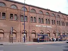 Industry that settled in Digbeth include the Birmingham Battery and Metal Company which moved to Selly Oak around 1876, and Typhoo Tea who had a factory on Bordesley Street which was in use from 1896 till 1978.[7] The now-disused factory has its own canal basin connected to the Digbeth Branch Canal. The Typhoo Tea building, also known as the S Rose & Co Building, is a four-storey building, blue brick at the front (Bordesley Street) and red brick to the rear. Currently vacant, it was previously used as a warehouse.[8] Another food industry that settled in Digbeth was Alfred Frederick Bird's custard company that produced a form of custard that did not use eggs. This was invented by his father, Alfred Bird. The factory was set up in the Devonshire Works in 1902 on the High Street.[7] The complex expanded and is now an arts centre. The Devonshire Works themselves are to be refurbished.