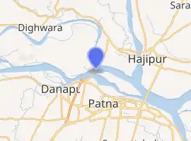 The Digha–Sonpur bridge (Hindi: दीघा-सोनपुर पुल) or J. P. Setu (Hindi: जेपी सेतु)[2] is a rail-cum-road bridge across river Ganga, connecting Digha Ghat in Patna and Pahleja Ghat in Sonpur, Saran district in the Indian state of Bihar.[3][4] It is named after Indian independence activist Jayaprakash Narayan (J. P.). The rail-cum-road bridge provides easy roadway and railway link between northern and southern parts of Bihar.[5] It is a steel truss bridge.[6] Regular scheduled passenger rail service was inaugurated on this route on 3 February 2016. This bridge of 4,556 metres (14,948 ft) length is the second longest rail-cum-road bridge in India, after Bogibeel Bridge in Assam.[7]