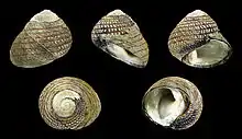 Diloma aethiops, whose common names include scorched monodont, spotted black topshell, and in the Māori language pūpū, pūpū-mai, or māihi[1] is a species of small sea snail, a marine gastropod mollusc in the family Trochidae, subfamily Monodontinae.[2]
