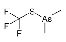 Dimethyl(trifluoromethylthio)arsine is an arsenical compound developed by the US military chemical weapon research program, which is described as "one of the most potent lung irritants known."[1][2]