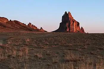 Dinétah is the traditional homeland of the Navajo tribe of Native Americans. In the Navajo language, the word "Dinétah" means "among the people" or "among the Navajo" (diné is the Navajo word that refers to the Navajo people; it also means "people" in the generic sense; -tah means "among, through, in the area of").[1] In the geographical sense, Dinétah encompasses a large area of northwestern New Mexico, southwestern Colorado, southeastern Utah, and northeastern Arizona. The boundaries are inexact, and are generally marked by mountain peaks which correspond to the four cardinal directions.