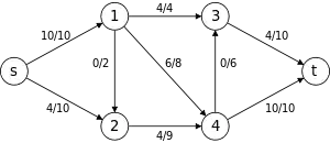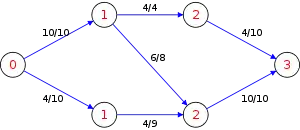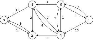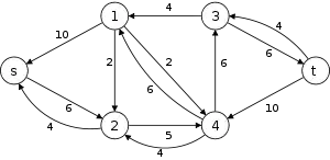 Dinic's algorithm or Dinitz's algorithm is a strongly polynomial algorithm for computing the maximum flow in a flow network, conceived in 1970 by Israeli (formerly Soviet) computer scientist Yefim (Chaim) A. Dinitz.[1] The algorithm runs in time and is similar to the Edmonds–Karp algorithm, which runs in time, in that it uses shortest augmenting paths. The introduction of the concepts of the level graph and blocking flow enable Dinic's algorithm to achieve its performance.