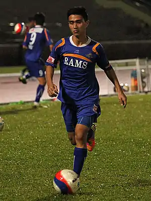 ![]() Dinie Fitri warming up in the blue away strip of Woodlands Wellington during the 2012 season. | |||