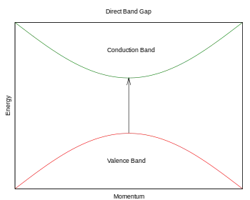 In semiconductor physics, the band gap of a semiconductor can be of two basic types, a direct band gap or an indirect band gap. The minimal-energy state in the conduction band and the maximal-energy state in the valence band are each characterized by a certain crystal momentum (k-vector) in the Brillouin zone. If the k-vectors are different, the material has an "indirect gap". The band gap is called "direct" if the crystal momentum of electrons and holes is the same in both the conduction band and the valence band; an electron can directly emit a photon. In an "indirect" gap, a photon cannot be emitted because the electron must pass through an intermediate state and transfer momentum to the crystal lattice.