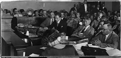There were several phases of grand jury inquiries regarding McPherson, all conducted by Los Angeles District Attorney Asa Keyes. The first inquiry was about charging McPherson's kidnappers, with indictments against Steve Doe, Rose Doe, and John Doe,[35] convening on July 8, 1926, and adjourning on July 20, 1926. However, it became immediately apparent McPherson was being interrogated from a viewpoint of hostile skepticism. Prosecutor Asa Keyes insinuated she was a charlatan who was run out of various cities during her revivals. McPherson offered to show news clippings to the contrary, attesting to the success of her work and requests for return visits. Annoyed, Keyes continued, focusing on the belief the disappearance was a plot to elicit money for a memorial fund commemorating McPherson's death or for promotional purposes. Her sanity was also questioned: perhaps she had simply wandered off suffering from amnesia.[36] The first inquiry ended with a determination that there was not enough evidence to charge either alleged kidnappers or the McPherson group for fraud.
