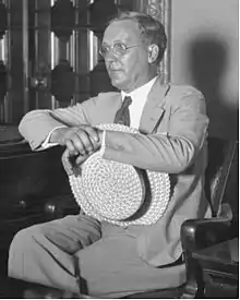 In December, Ormiston was found by newsmen, living quietly in Harrisburg, Pennsylvania. Papers described him being taken without resistance by police while sitting at a typewriter.[119] A Harrisburg detective characterized the affair as a "publicity stunt," but declined to elaborate. Among Ormiston's personal effects were five diplomas from five radio schools and letters implying he had a wife in Brazil.[99] He was escorted to Chicago, Illinois with intent to be transported to Los Angeles. Asa Keyes said he would “do everything in his power” to extradite Ormiston. However, he did not stop in Chicago to pick him up though he traveled near there on his way to and from Washington, D.C. The Chicago police chief denounced Keyes for "yelling to high heaven for his apprehension" but when the fugitive Ormiston was "within reach," Keyes called Ormiston of minimal importance.[101][120] The Chicago police chief lacked proper documents for further action, and to the annoyance of Los Angeles officials, Ormiston was released. When the warrant was finally obtained, Chicago police were ready to transport their expected prisoner, Ormiston, to Los Angeles [121] In the meantime, Ormiston appeared in Los Angeles surrounded by newsmen and was greeted by the entire prosecution staff. Affably, amidst the flashbulbs of photographers, Ormiston accepted his served warrant. His bond was set at $2,500.[122]