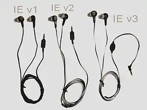 The MIE2 and MIE2i were sold from 2010 until 2015.[14][15] The MIE2 headset is the same as the IE2 headphones, but with a microphone added so that it operates as a cellphone headset.[16] The MIE2i headset is a version of the MIE2 design for Apple devices (including the iPhone, iPod, iMac, iPad).[16] It incorporates an in-line remote control for volume, track up/down and access to select Apple voice applications.