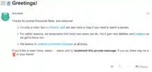 Discobot is a customizable bot whose purpose is onboarding new users,[15] interactively, to use many of the platform's features like bookmarking a topic, oneboxing links (embedded previews), adding emojis, using mentions, basic formatting, uploading images to a reply, flagging posts and using the search function.