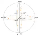 | Hierarchical Equal Area isoLatitude Pixelization (HEALPix): HEALPix has equal area quadrilateral-shaped cells and was originally developed for use with full-sky astrophysical data sets.[16] The usual projection is "H?4, K?3 HEALPix projection". Main advantage, comparing with others of same indexing niche as S2, "is suitable for calculations involving spherical harmonics".[17] | ![]() | |||