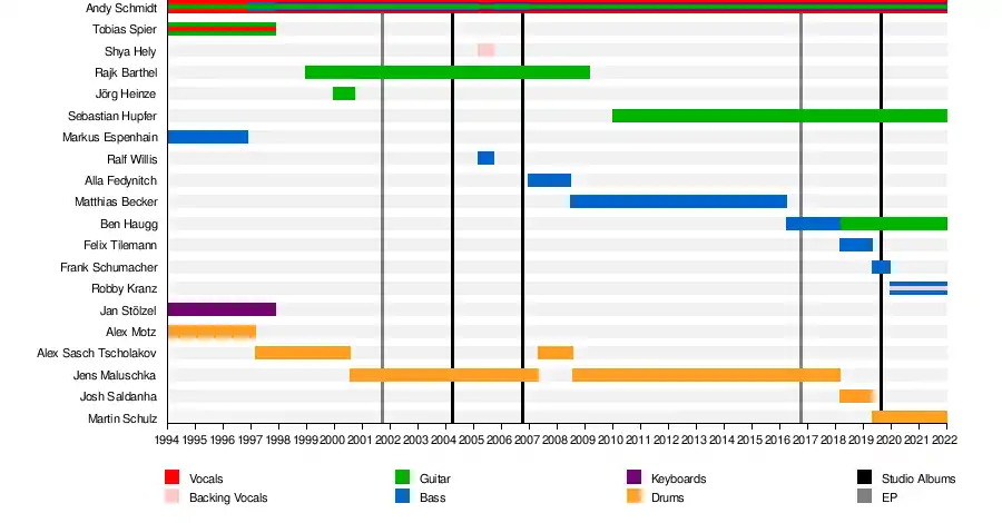 | Members | Andy Schmidt (vocals, guitar) Sebastian Hupfer (guitar) Ben Haugg (guitar) Robby Kranz (bass, vocals) Martin Schulz (drums) |