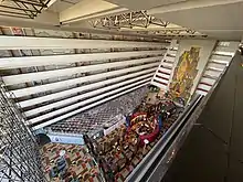 The Contemporary Tower houses most of the resort's key facilities, including resort registration and the guest service concierge. The main hall, named the Grand Canyon Concourse, is located in the main tower and houses restaurants and shops. 383 guest rooms line the outer walls of the Contemporary Tower. The Walt Disney World Monorail System runs through the inside of this building and a monorail station is located here for resort guests. Adorning the concourse walls is a multi-story mosaic designed by Mary Blair. One three-story wing flanks the south side of the tower and houses an additional 250 rooms. A convention center was added to the resort and opened on November 11, 1991, with more than 90,000 square feet (8,400 m2) of convention space. In October 2007, the resort received designation as part of the Florida Green Lodging Program.[19]