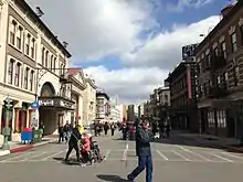 Hollywood Boulevard, inspired by the real street of the same name, serves as the park's main entrance and operates in the same vein as Main Street, U.S.A. at Magic Kingdom. It is lined with themed streetscape facades and venues selling Disney merchandise and park services. Guests enter through the main entrance gate, which resembles the Pan-Pacific Auditorium. Near the park's gate is a recreation of the Crossroads of the World tower. Live street entertainment and seasonal parades travel down the main street throughout the day. At the far end of Hollywood Boulevard stands an exact replica of Grauman's Chinese Theatre, which houses Mickey and Minnie's Runaway Railway, a dark ride themed to the world of Mickey Mouse animated shorts. Near the entrance of Animation Courtyard—resides The Hollywood Brown Derby restaurant, a themed replica of the original Brown Derby restaurant in Hollywood, California.