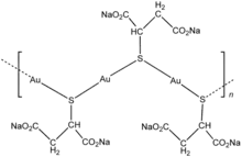 Disodium aurothiomalate is a chemical compound with the formula AuSCH(CO2Na)CH2CO2Na. In conjunction with its monoprotonated derivative, this coordination complex or closely related species are used to treat rheumatoid arthritis, under the tradename Myochrysine.[1] The thiomalate is racemic in most formulation.