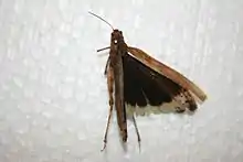 Dissosteira carolina feeds on both grasses and forbs but the actual composition of the diet depends on habitat. For example, in a disturbed site that had been reseeded with Bromus inermis and Agropyron cristatum, when the adults' crop contents were examined 98 percent of the food consumed was Bromus inermis, by contrast, in a disturbed site that had not been reseeded but where weeds have colonised naturally, the adults' crop contents consisted of 33 percent native grasses and 64 percent weeds.[4] In two-choice laboratory tests it was shown that D. carolina readily fed on Bromus tectorum, Bromus inermis, Pascopyrum smithii, wheat, barley, dandelion, and Bassia. As it has a wide geographical distribution and because it is known to be polyphagous D. carolina probably has many potential food plants.[4]