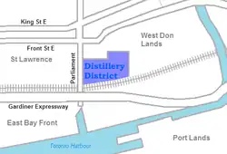 {{cite news}}: Missing or empty|title=(help) - Distillery Site Plan Archived November 25, 2011, at the Wayback Machine The Historic Distillery District