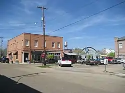 The unusual layout of the town dates from 1813, and is deemed a contributing site in the listing. It was laid out in 360 feet (110 m) square blocks, each with a small central square; the squares became known as "oxlots" due to tethering of oxen and other livestock in them.[2]
