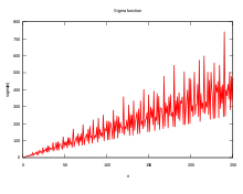The behaviour of the sigma function is irregular. The asymptotic growth rate of the sigma function can be expressed by: [17]