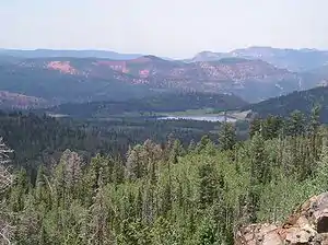 Dixie National Forest is a United States National Forest in Utah with headquarters in Cedar City. It occupies almost two million acres (8,000 km²) and stretches for about 170 miles (270 km) across southern Utah. The largest national forest in Utah, it straddles the divide between the Great Basin and the Colorado River. In descending order of forestland area it is located in parts of Garfield, Washington, Iron, Kane, Wayne, and Piute counties. The majority (over 55%) of forest acreage lies in Garfield County.[3]
