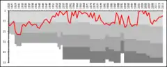 | 3 | 1968–1984 | 289 (54) | 0 (0) | 8 (0) | 2 (1) | 299 (55) | |