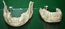 Replicas of the D211 (right, discovered in 1991) and D2735 (left, discovered in 2001) mandibles