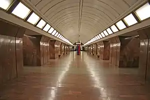 Dmitrovskaya (Russian: Дмитровская) is a station of the Serpukhovsko-Timiryazevskaya Line of the Moscow Metro. It was opened in 1991, and is named for the highway leading to the town of Dmitrov. The station is a pylon-trivault.