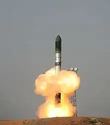 The Dnepr rocket (Russian: Днепр, romanized: Dnepr; Ukrainian: Дніпро, romanized: Dnipró) was a space launch vehicle named after the Dnieper River. It was a converted ICBM used for launching artificial satellites into orbit, operated by launch service provider ISC Kosmotras. The first launch, on April 21, 1999, successfully placed UoSAT-12, a 350 kg demonstration mini-satellite, into a 650 km circular Low Earth orbit.[2][3]