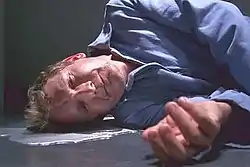 The episode title "Do Shapeshifters Dream of Electric Sheep" refers to the Philip K. Dick science fiction novel Do Androids Dream of Electric Sheep?, which was later adapted into the film Blade Runner.[3][5][10] The novel dealt with what it means to be human, exploring how faking an emotion long enough can actually develop into real feelings, much like in the episode where two shapeshifters first pretended but then developed feelings for their victims' families.[11] While Peter is drinking in a bar, science fiction movie The Invisible Boy is playing on a television in the background, with the character Robby the Robot visible.[12] During the episode, Walter makes two requests in order to provide "brain stimulation" to the deceased Senator Van Horn: a portrait of former president George W. Bush, and a copy of Hump Magazine.[5][11][12]
