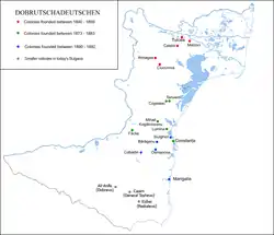 The Dobrujan Germans (German: Dobrudschadeutsche) were an ethnic German group, within the larger category of Black Sea Germans, for over one hundred years. German-speaking colonists entered the approximately 23,000 km2 area of Dobruja around 1840 and left during the relocation of 1940. Dobruja is a historic territory on the west coast of the Black Sea.[1]