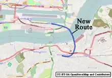 One of the tunnel portals for Crossrail is on the original site of Pudding Mill Lane station. As a consequence, work was carried out to divert the DLR between City Mill River and the River Lea onto a new viaduct further south. This included a replacement station, which opened on 28 April 2014.[61][62] The former station stood on the only significant section of single track on the system, between Bow Church and Stratford,[63] though the opportunity was taken to double the track in three stages, to improve capacity. There was originally no provision for works beyond the realigned section in the Crossrail Act.