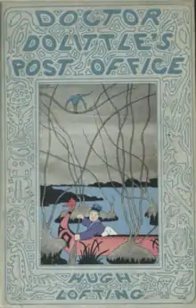 Doctor Dolittle's Post Office is the third of Hugh Lofting's Doctor Dolittle books.[1] Set on the West Coast of Africa, the 1923 book follows the episodic format of most other books in the series. In the beginning of the book, Doctor Dolittle helps to capture a slave trader's ship, then organizes the postal service of a small African kingdom, Fantippo, ruled over by King Koko. Mobilizing migrating birds to carry people's mail from continent to continent, Doctor Dolittle effectively anticipates the 20th Century invention of air mail. Over the course of later chapters, he discovers a hidden island populated by prehistoric creatures, gets thrown into another African jail, invents animal alphabets, and defeats at least two armies. Each of the animals in the Dolittle family also tells a personal story. The postal program grows into a worldwide postal and publishing service for the benefit of animals everywhere.[2]