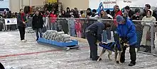 Archeological evidence shows that humans bred dogs for pulling sleds some 10,000 years ago.[9] Artifacts, including rings and parts that connect reins to sleds, have been found on sites throughout the northernmost stretches of mainland and on arctic islands.[10][7]