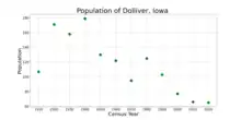 Dolliver got its start in the year 1899, following the construction of the Chicago and North Western Railway through that territory.[3] It is named for United States Senator Jonathan P. Dolliver.[4] The railroad line on which the town was established was shut down in the early 1970s.