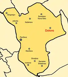 Dolovo (Serbian Cyrillic: Долово) is a village in Serbia. It is situated in the Pančevo municipality, in the South Banat District, Vojvodina province. The village has a Serb ethnic majority and its population is 6,146 (2011 census). The place name means location of troughs.