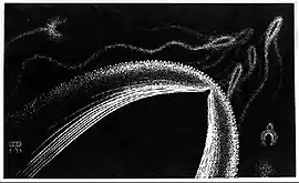Dolphins also known as a Dolphins in Phosphorescent Sea is a woodcut print by the Dutch artist M. C. Escher. This work was first printed in February, 1923. Escher had been fascinated by the glowing outlines of ocean waves breaking at night and this image depicts the outlines made by a school of dolphins swimming and breaching ahead of the bow of a ship. The glow was created by bioluminescent dinoflagellates.