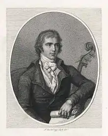 Domenico Carlo Maria Dragonetti (7 April 1763 – 16 April 1846) was an Italian double bass virtuoso and composer with a 3 string double bass. He stayed for thirty years in his hometown of Venice, Italy and worked at the Opera Buffa, at the Chapel of San Marco and at the Grand Opera in Vicenza. By that time he had become notable throughout Europe and had turned down several opportunities, including offers from the Tsar of Russia. In 1794, he finally moved to London to play in the orchestra of the King's Theatre, and settled there for the remainder of his life. In fifty years, he became a prominent figure in the musical events of the English capital, performing at the concerts of the Philharmonic Society of London as well as in more private events, where he would meet the most influential persons in the country, like the Prince Consort and the Duke of Leinster. He was acquainted with composers Joseph Haydn and Ludwig van Beethoven, whom he visited on several occasions in Vienna, and to whom he showed the possibilities of the double bass as a solo instrument. His ability on the instrument also demonstrated the relevance of writing scores for the double bass in the orchestra separate from that of the cello, which was the common rule at the time. He is also remembered today for the Dragonetti bow, which he developed throughout his life.
