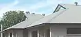 Applying corrugated iron sheeting to a house under construction. Shows two gables and external cyclonic fastenings