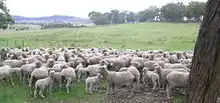For breeders intent on strict improvements to their flocks, ewes are classed and inferior sheep are removed prior to mating in order to maintain or improve the quality of the flock.[31] Muffled (wooly) faces have long been associated with lower fertility rates.[32] Stud or specially selected rams are chosen with aid of objective measurements, genetic information and evaluation services that are now available in Australia and New Zealand.[33][34] The choice of mating time is governed by many factors including climate, market requirements and feed availability. Rams are typically mated at about 2.5% depending on the age of the sheep, plus consideration as to the size and type of mating paddocks.[32] The mating period ranges from about 6 to 8 weeks in commercial flocks. Longer mating times result in management problems with lamb marking and shearing etc.[31]