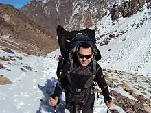 Domènec (Domi) was born in Sant Julià de Lòria on 26 January 1981. Domi's mountaineering hobby began when he was 29 years old progressively and he climbed the Mont Blanc (4,810 m). The next year, in January 2010, he climbed successfully the Aconcagua (6,962 m), in April he climbed the Elbrus (5,642 m) and in July, he climbed the Cervino (4,478 m). In February 2011, Domi travelled to Africa and reached the summit of the mount Toubkal (4,167 m), the highest summit of North Africa. The same year, he traveled to Kathmandu, participating in an expedition to reach the summit of the Everest from the north face.[2] A snow storm stopped him at 8,000 m. In January 2012 he climbed the Kilimanjaro (5,891 m), in May he climbed Denali (6,194 m)[3] and climbed again the Mont Blanc by the 4,000s route.