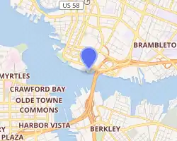 ![]() View of the tower from over the Elizabeth River. | |