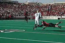 ![]() Dominique pushing for extra yards after the catch against #46 Mike Smith. From Texas Tech Red Raiders vs Baylor Bears in 2004. | |||||||||