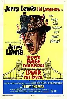 Don't Raise the Bridge, Lower the River is a 1968 British comedy film produced by Walter Shenson and starring Jerry Lewis.[3] It was released on 12 July 1968 by Columbia Pictures and is based on Max Wilk's novel of the same name, with the original Connecticut locale moved to Swinging London and Portugal.