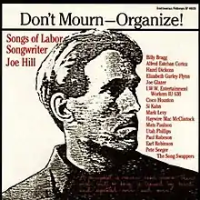 "Don't mourn, organize!" is an expression, abridged from a statement by labor activist and songwriter Joe Hill near the time of his death. Hill wrote the full statement in a telegram he sent to Bill Haywood, which stated, "Goodbye, Bill, I die like a true blue rebel. Don't waste any time mourning. Organize!" Hill followed that telegram with another: "Could you arrange to have my body hauled to the state line to be buried? I don't want to be found dead in Utah."[1] In 1915, Hill was convicted and executed for the murder of John and Arling Morrison a year prior; he denied having committed the murders but, for reasons that remain a source of speculation, was unwilling to give an alibi during his trial.