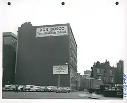 Don Bosco Technical High School (called as Don Bosco Trade School from 1946 to 1954 and officially named Don Bosco School of Technology from 1993 until its closure) was a all-boys Roman Catholic secondary school for grades 9 through 12. Founded for immigrant boys by the Salesians of Don Bosco, a religious order of priests and brothers, the school was situated at 300 Tremont St. near the red light district, Boston, Massachusetts, United States from 1946 until its closure in 1998.