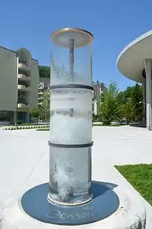 In 1908, a highly mineralized water spring was discovered by a team under the leadership of the geologist and inspector of the Karlovy Vary spa, dr. Joseph Knett. This mineral water was given the name DONAT. In the interwar period, this part of Slovenia became a part of the Kingdom of Yugoslavia. Rogaška, as the most luxurious and modern resort in the entire territory, attracted the new elite, the government and military authorities and industrial moguls. Following the Second World War, new wells were found under the guidance of Professor Bać from Sarajevo and in collaboration with the Geological Institute in Ljubljana. This drilling signified a new beginning with regard to research and methods of capturing underground water in Slovenia. Up to the present time, the comprehensive geological, hydro-geological and geophysical research was carried out at Rogaška Slatina under the guidance of Professor Bać and Anton Nosan from the Geological Institute in Ljubljana. On the basis of the positive results of this research, quite a few wells were drilled for the capture of mineral water and CO2 gas which ensured a sufficient supply of mineral water, of type Donat (and Tempel), to the Health Spa Resort and its Bottling Complex.[5]