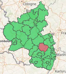 The Donnersbergkreis is a district (Kreis) in the middle of Rhineland-Palatinate, Germany. Neighboring districts are Bad Kreuznach, Alzey-Worms, Bad Dürkheim, Kaiserslautern, Kusel.